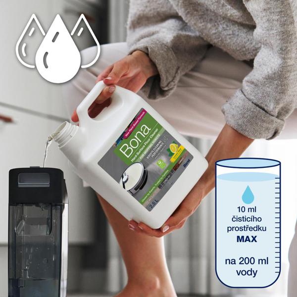 Bona je špeciálne vyvinuté riešenie na účinné čistenie podláh pre väčšinu robotických mopov a robotických vysávačov. Zloženie s rastlinnými ingredienciami a esenciálnym olejom z citróna a mäty pre sviežu vôňu. Koncentrát pre jednoduché a efektívne čistenie uzavretých tvrdých podláh typu laminátové podlahy, keramická dlažba, linoleum, vinyl, mramor. Zanecháva podlahu čistú a lesklú bez šmúh, s príjemnou vôňou. Certifikácia GREENGUARD Gold pre zdravšie vnútorné prostredie.