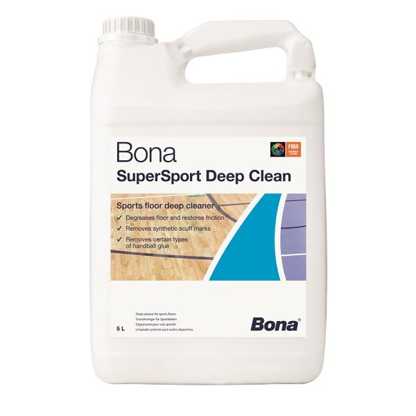 Bona SuperSport Deep Clean je hloubkový čistič pro příležitostné čištění vnitřních sportovních povrchů podlah. Bona SuperSport Deep Clean je specificky určený k odstranění černých šmouh z podrážek bot, odstranění štěpařského vosku z házené a nahromaděného tělesného tuku a dalších nečistot, které mohou vytvářet kluzký povrch. Certifikovaný FIBA.